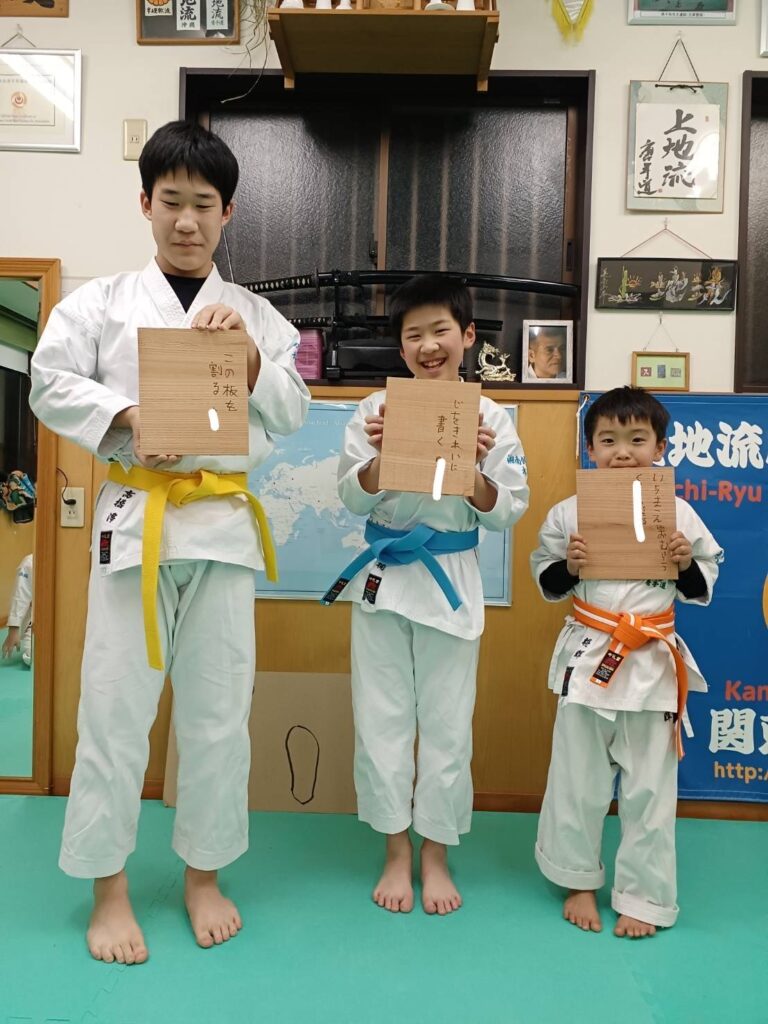 それぞれの今年の目標を板に書いて試し割り!